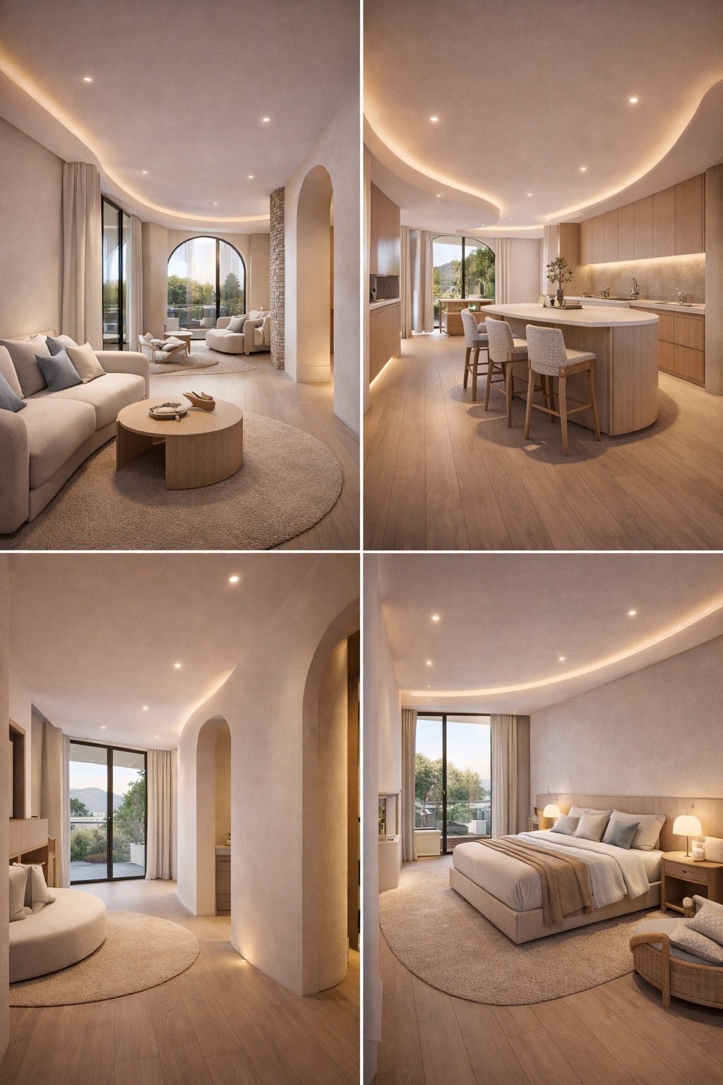 Designed for a narrow beachside allotment in Merewether, this contemporary duplex redefines compact coastal living through architectural clarity and innovation. The façade is expressed as two sculpted volumes, unified by soft curvature and framed arched glazing that introduces elegance and rhythm to the streetscape. The upper-level openings maximise natural light while creating a refined vertical emphasis, enhancing the sense of height within the constrained footprint.